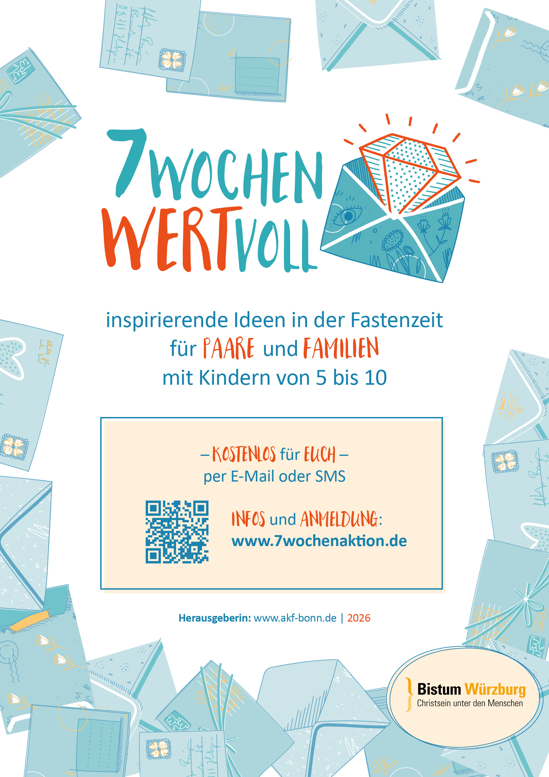 unter dem Motto >>7 Wochen WERTvoll<< möchten wir in der Fastenzeit das Zusammenleben als Paar bzw. als Familie in den Blick nehmen. Dazu erhaltet ihr ab Februar 2026 wöchentlich einen Brief mit Ideen und spirituellen
